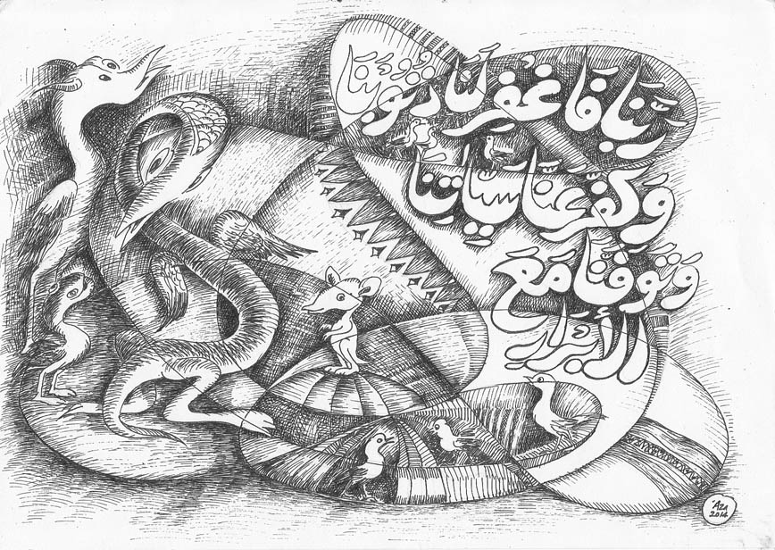 Karya ini dibuat di Makassar pada tanggal, 1 September 2014 bertepatan dengan tanggal, 6 Zulqaidah 1435 H. Ukuran: 21 x 29,5 cm. Media: Tinta Cina di atas kertas. Koleksi: Pribadi.