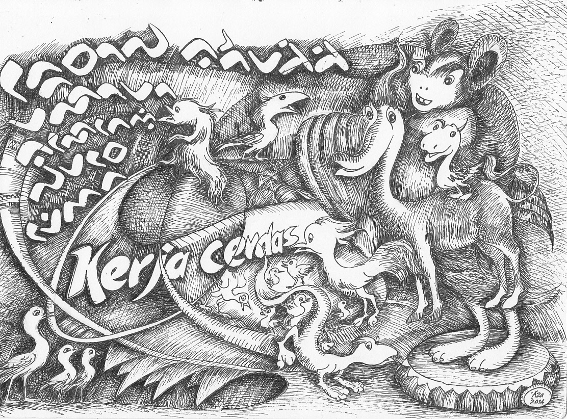 Dibuat di Surabaya Jawa Tengah pada tanggal, 25 September 2014/ 30 Zulqaidah 1435 H. Ukuran: 21 x 29,5 cm. Media: Tinta Cina di atas kertas. Koleksi: Pribadi.