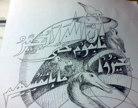 Dibuat di Makassar, 19 Maret 2012.  Ukuran: 21 x 29,5 cm. Media: Tinta Cina di atas kertas. Koleksi: Pribadi.