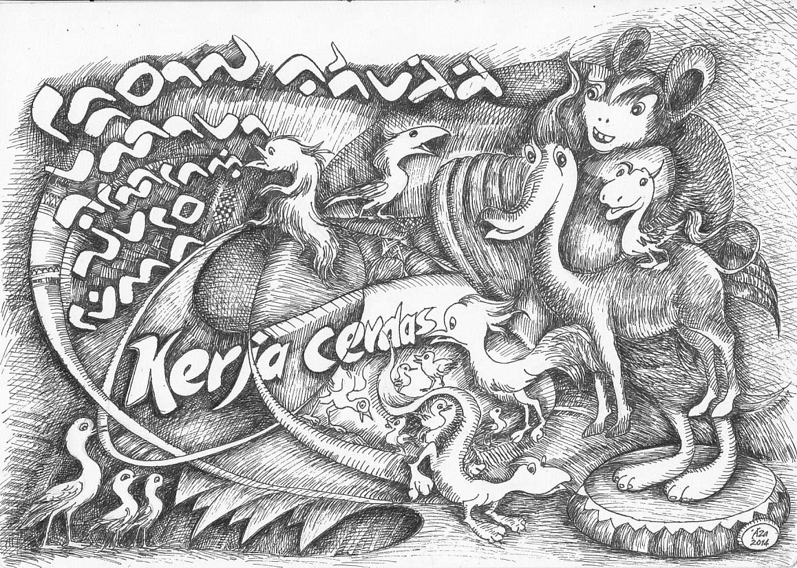 Dibuat di Surabaya Jawa Tengah, 25 September 2014/ 30 Zulqaidah 1435 H. Ukuran: 21 x 29,5 cm. Media: Tinta Cina di atas kertas. Koleksi: Dra. Hj. Mas’ati Kepala Dinas Pendidikan dan Kebudayaan Kabupaten Sinjai.