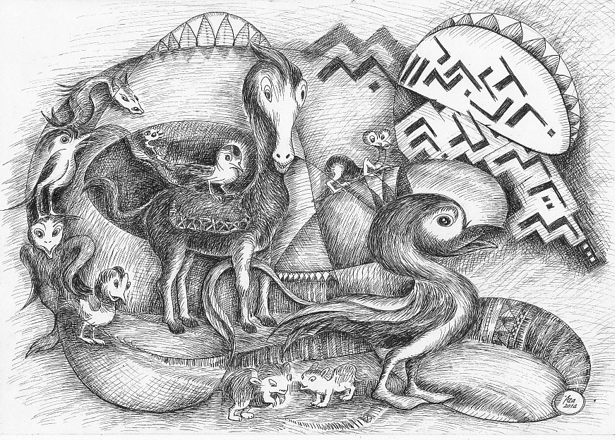 Dibuat di Makassar pada tanggal 1 Dsember 2014. Ukuran: 21 x 29,5 cm. Media: Tinta Cina di atas kertas. Koleksi: Pribadi.