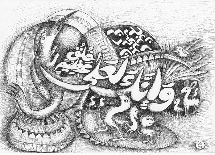 Karya ini dibuat di Makassar Sulsel Indonesia pada tanggal 8 Januari 2015/ 17 Rabiul Awal 1436 H. Ukuran: 21 x 29,5 cm. Media: Tinta Cina di atas kertas. Koleksi: Pribadi.
